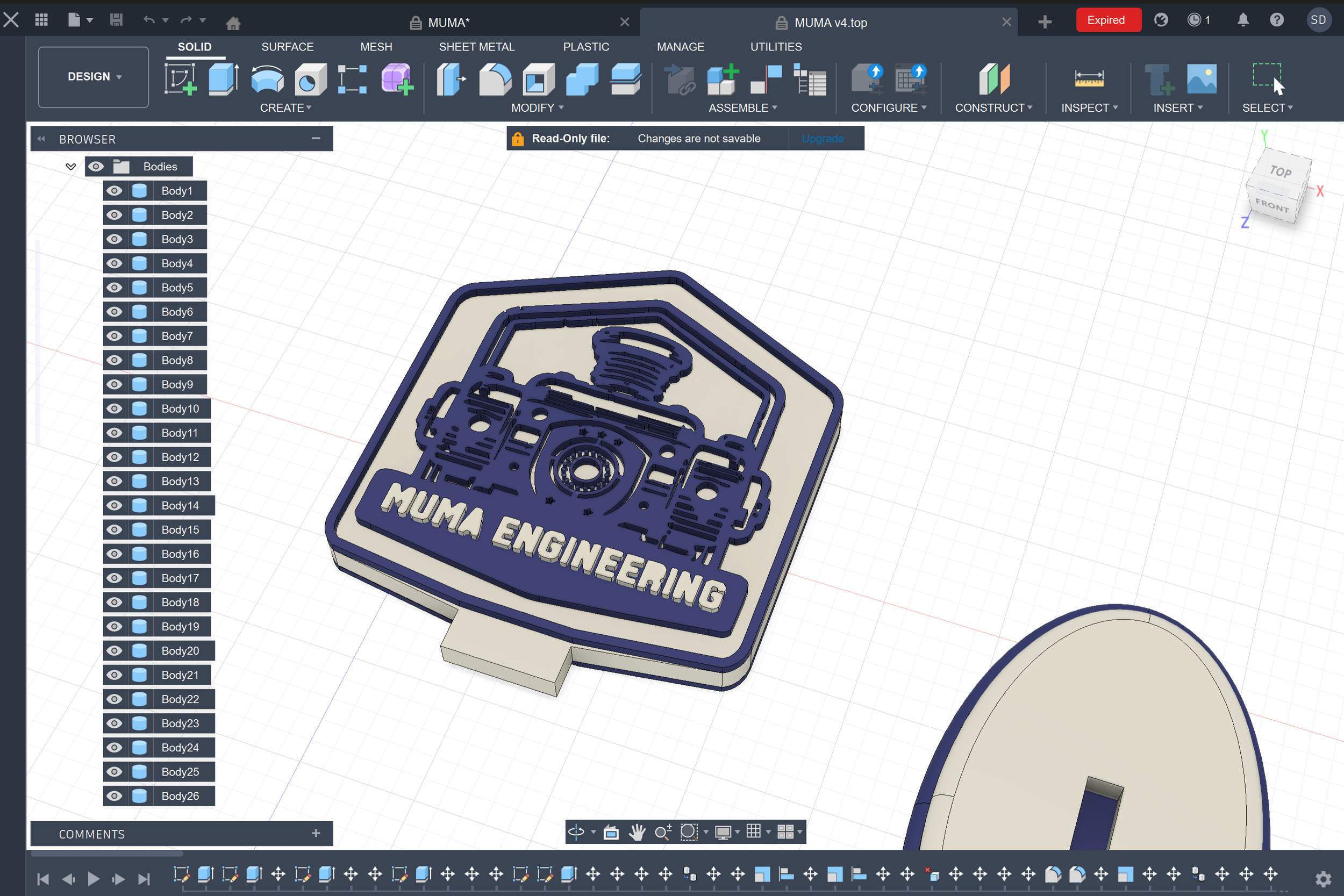 For this project, I started with creating 2D vector shapes from a logo image, which I then exported in .svg format. Every separate layer was uploaded on Autodesk Fusion and from there I modelled them into 3D objects ready for printing.
