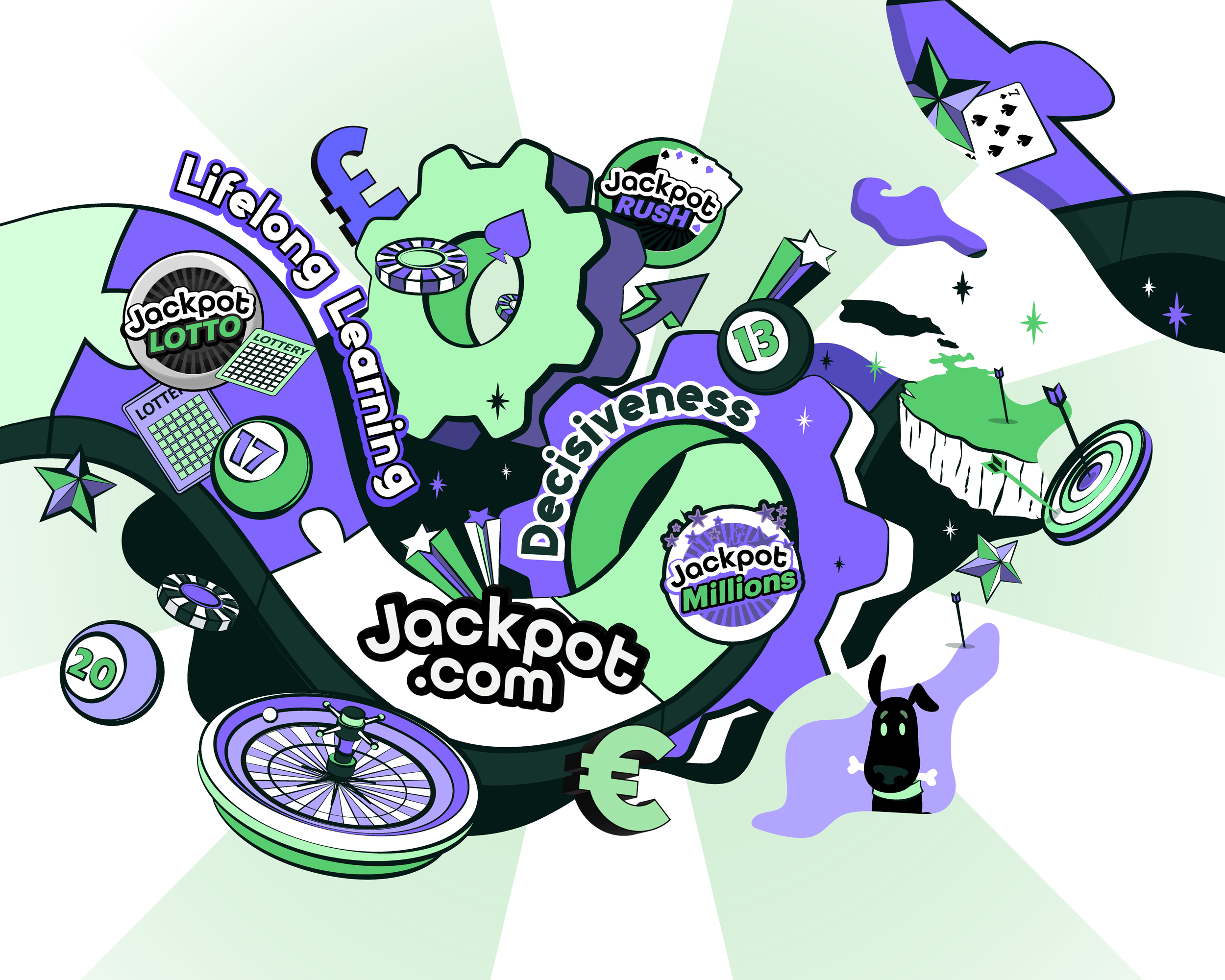 During my five years in the iGaming and lottery industry at Jackpot.com, I designed landing-page banners, campaign logos, emails, GIFs, and anything else needed for casino and lottery promotions. Collaborating within the CRM team, I used Adobe Illustrator, Photoshop, Figma, and After Effects to deliver end-to-end creative solutions. My role also extended to illustration and branded merchandise; printing murals, t-shirts, and other promotional products, further strengthening my skills in design, branding, and user experience. Below is a snap shot of some of the project I have been a part of.